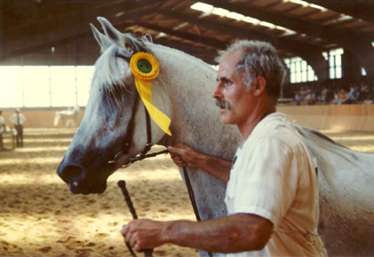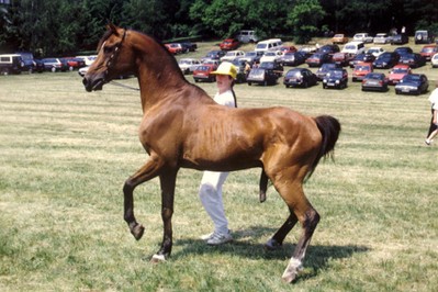 3 1/2jährig begann für Zahron der Ernst des Lebens. Er lernte bei Toni Baumann (Ausbildungszentrum Kauber Platte) alles, was für die Präsentation eines Hengstes wichtig war, denn Toni Baumann stellte ihn auch in Aachen vor. Wir haben ihn aber leider viel zu früh vorgestellt, er war noch viel zu unreif, erreichte aber trotzdem die Wertnote 5. Ein Trost ist, daß mir aber von vielen Seiten bestätigt worden ist, dass er - jetzt 9 bzw. 10jährig - eine weitaus bessere Wertnote erhalten hätte. Ja, so ist das mit den Spätentwicklern.